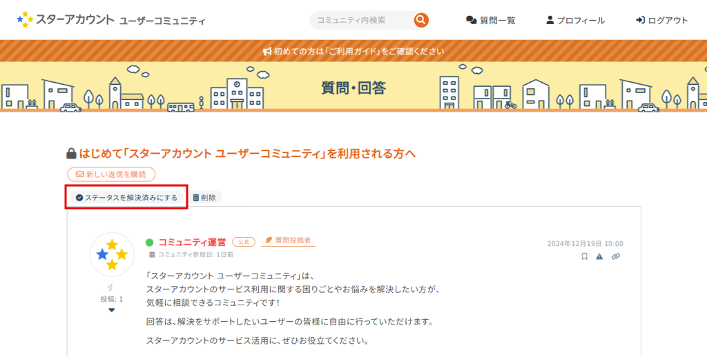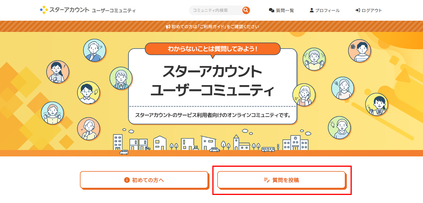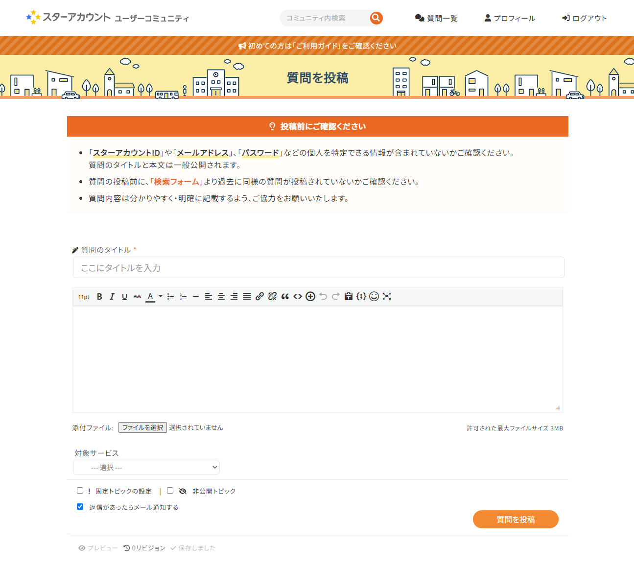 「スターアカウント ユーザーコミュニティ」にログインすると、質問の投稿が行えます。
