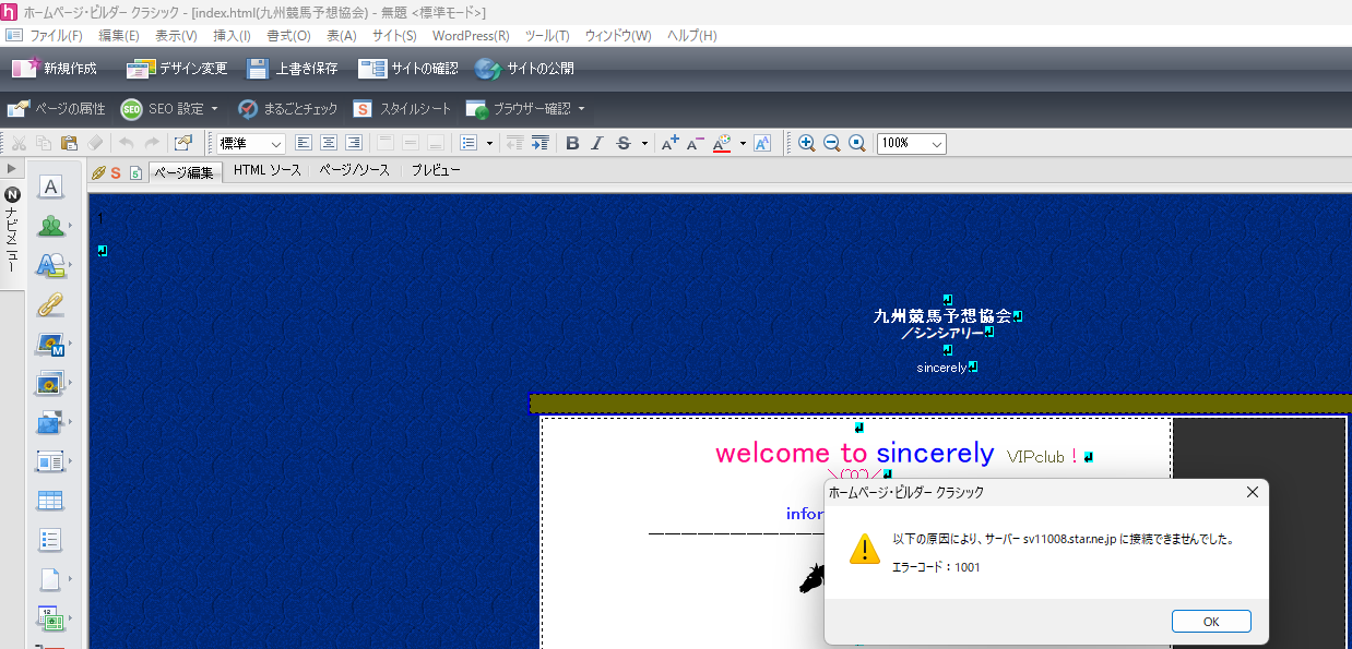 以下の原因により、サーバー sv11008.star.ne.jp に接続できませんでした。 エラーコード:1001